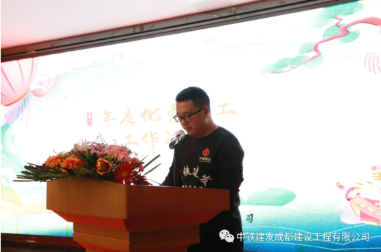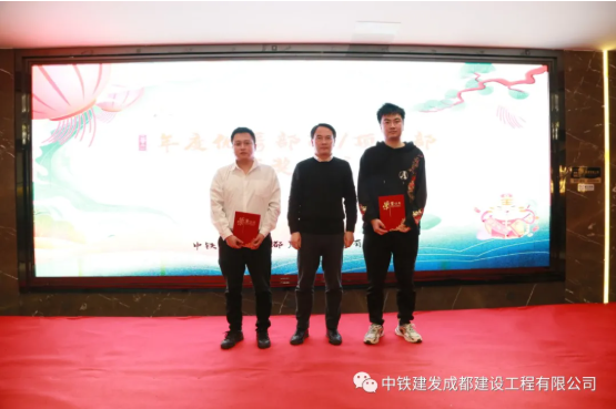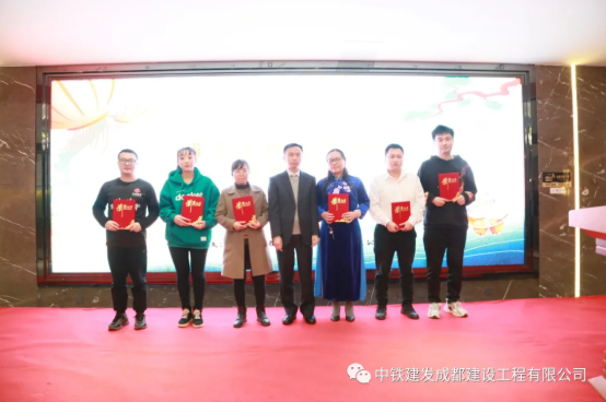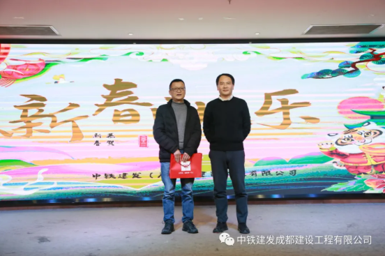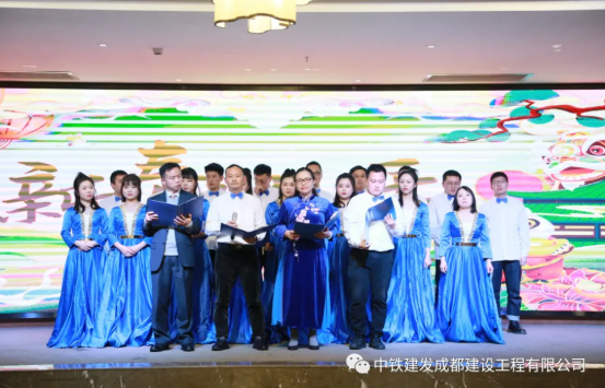 表彰环节中,由董事长唐总、常务副总杨总分别向年度优秀员工、优秀项目部与优秀部门颁发荣誉证书。