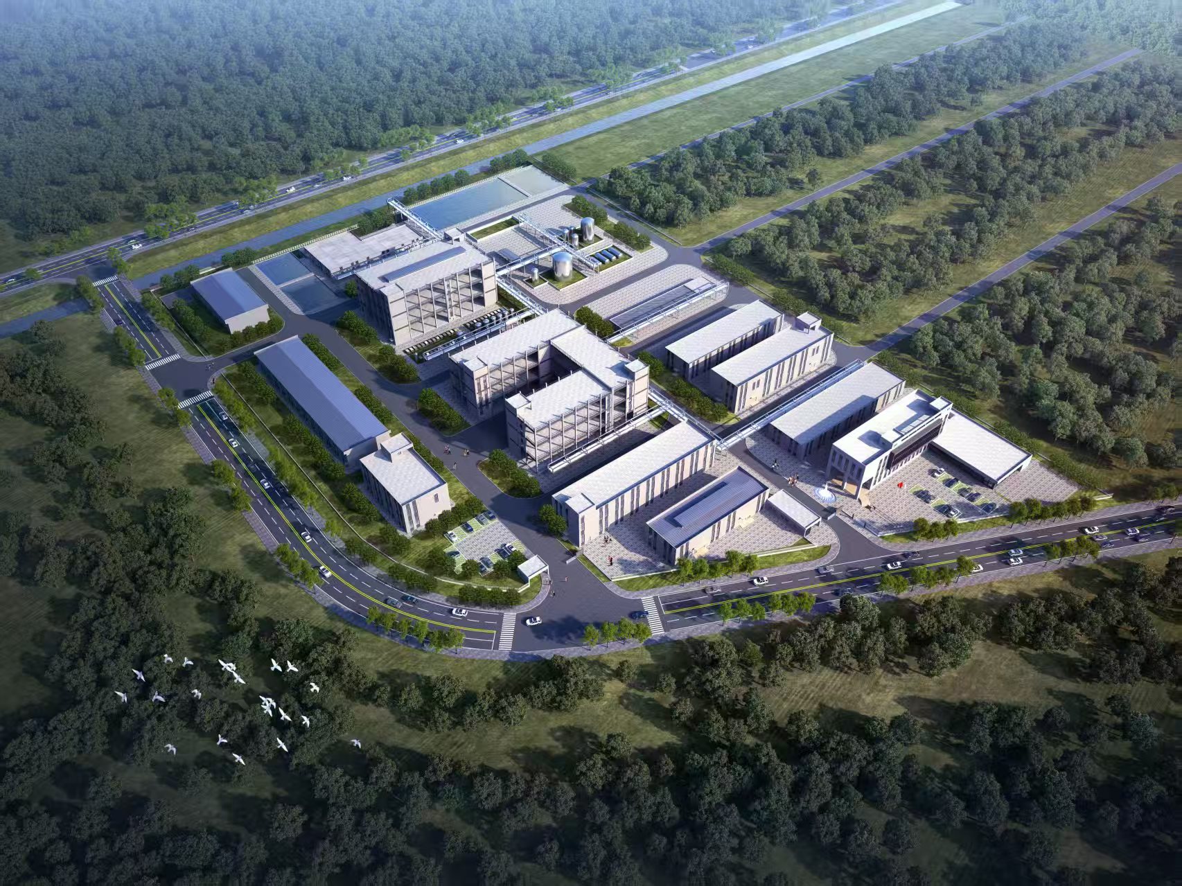 总平工程:园区道路、综合管网、智慧安防系统及生态防护设施